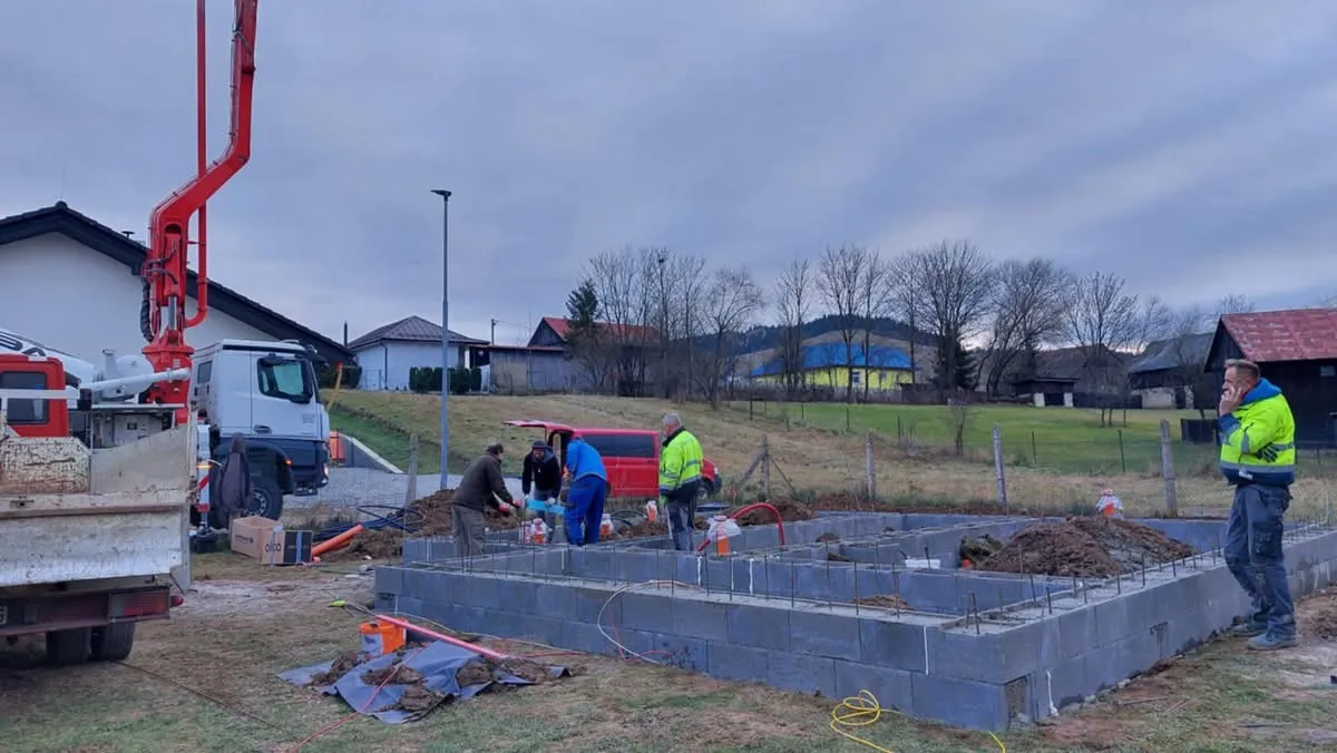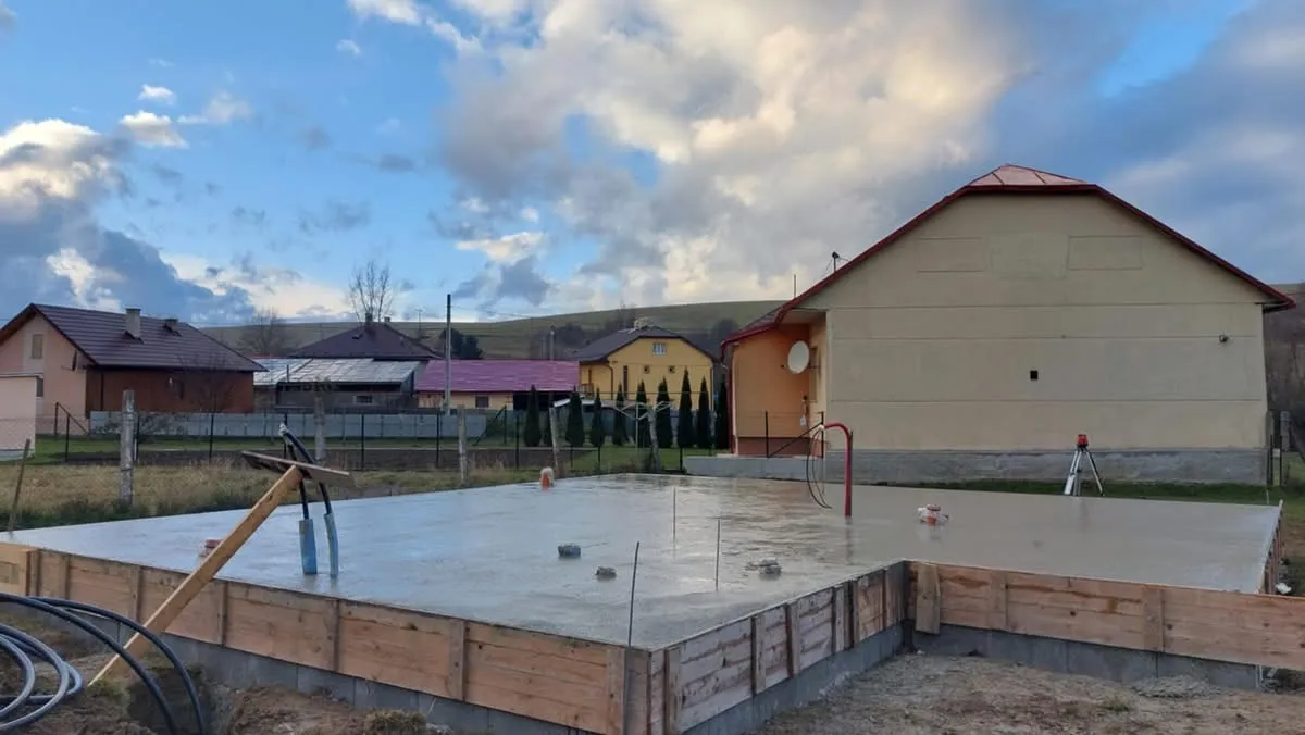 Realizácia základovej dosky pre drevenicu v obci Vislanka. Kompletné zemné práce, debnenie, armovanie a betonáž základovej konštrukcie.