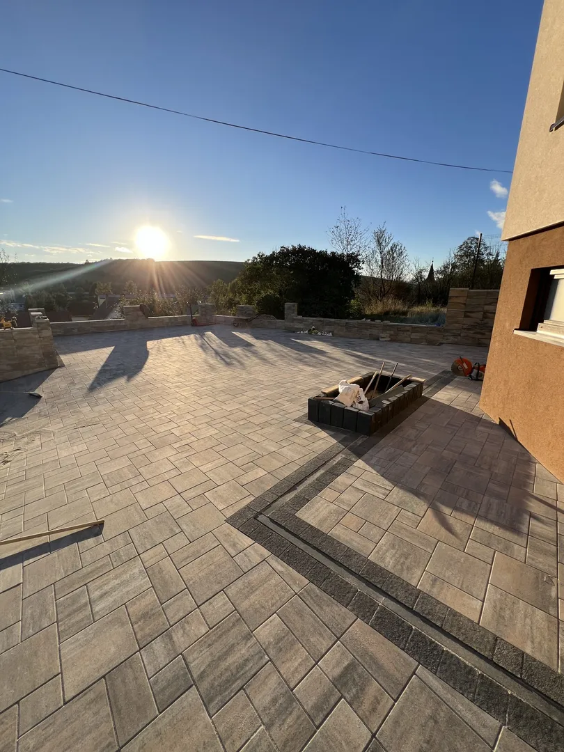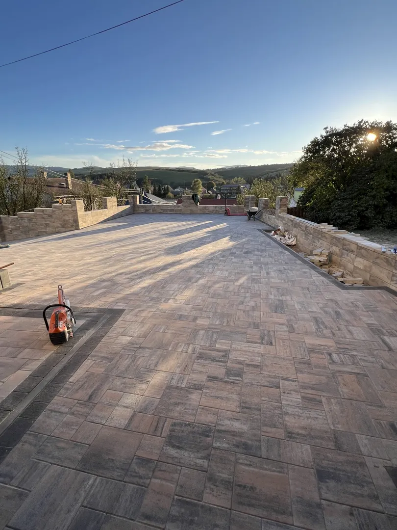 Pokládka zámkovej dlažby - chodník pri rodinnom dome v Ľubotíne.